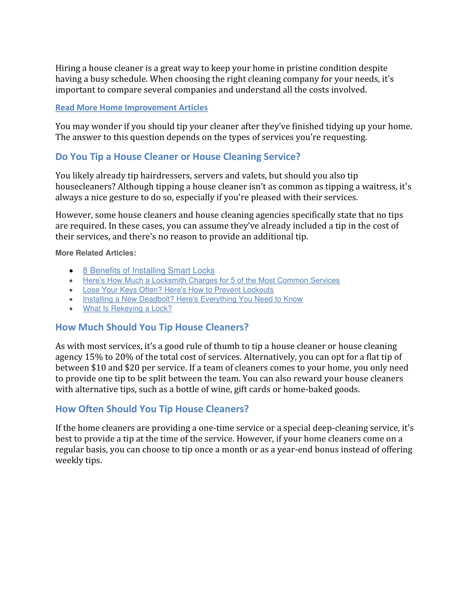 Many house cleaning businesses do not require tips. This ensures that everyone gets an equal. Read through customer reviews.